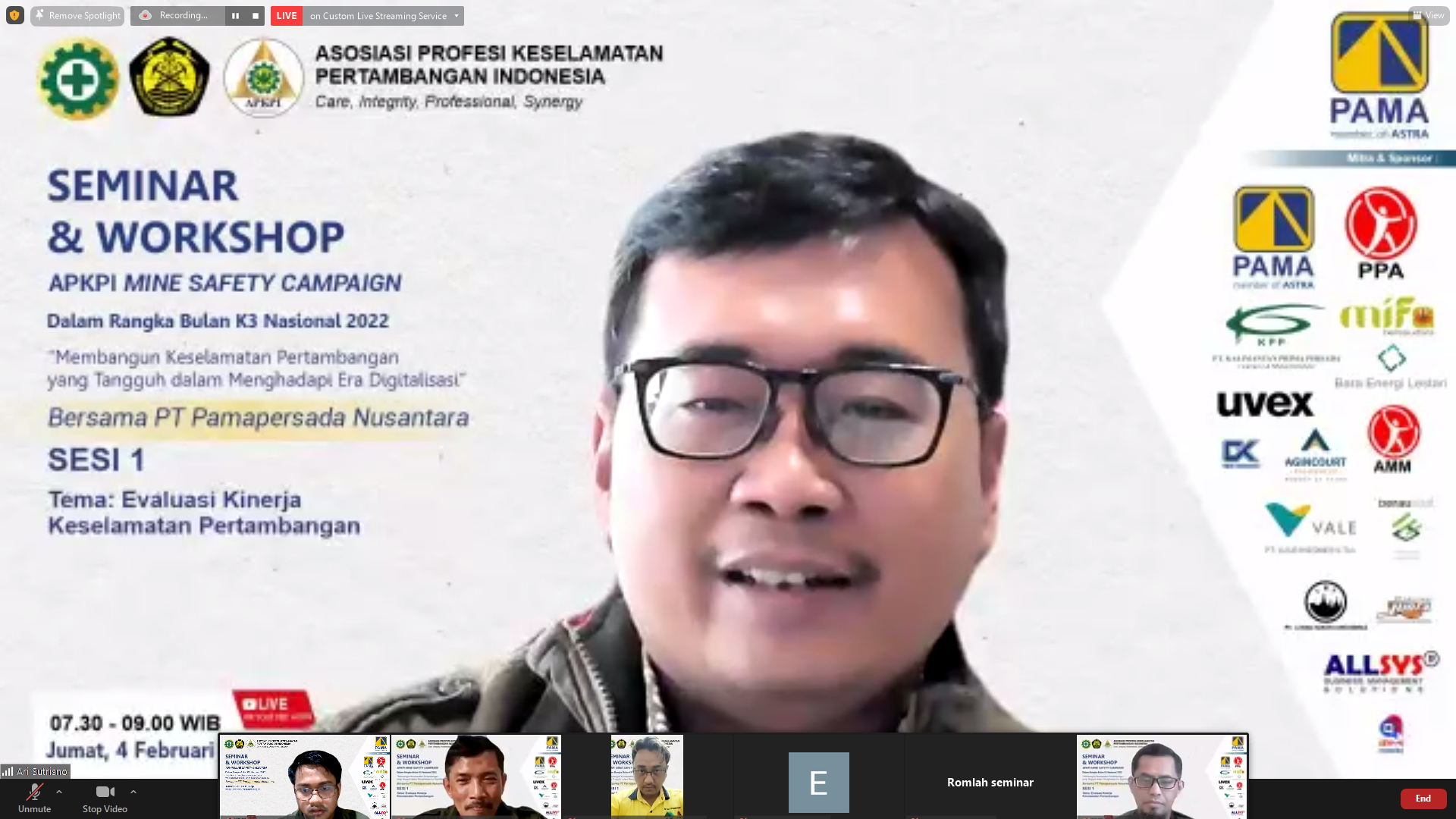 Hal itu disampaikannya di seminar dan workshop Mine Safety Campaign dengan tema 'Membangun Keselamatan Pertambangan yang Tangguh dalam Menghadapi Era Digitalisasi' dalam rangka bulan K3 nasional 2022 kerjasama antara Asosiasi Profesi Keselamatan Pertambangan Indonesia (APKPI) bersama PT Pamapersada Nusantara, Jumat 4 Februari 2022.
