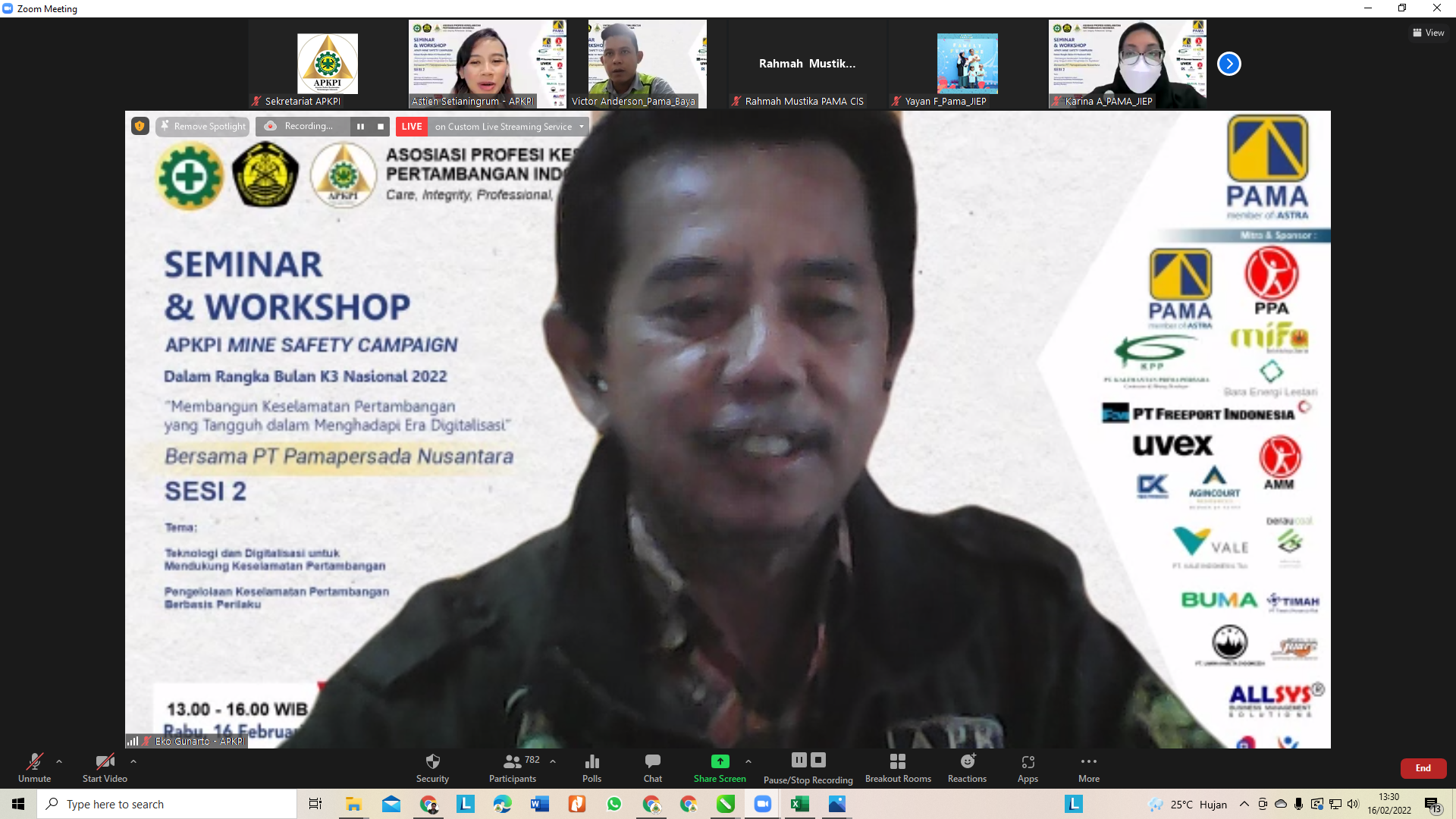 "Teknologi sekarang berkembang pesat, di mana industri sudah masuk dari 4.0 dan menuju 5.0. Kita [insan pertambangan] harus terus melakukan pengembangan baik research dan development terkait teknologi dan digital sehingga bisa diimplementasikan untuk pengembangan produktivitas dan kinerja keselamatan pertambangan," kata Frans, pada seminar yang dihadiri sebanyak 1.133 peserta yang berlangsung pada 16 Februari 2022.