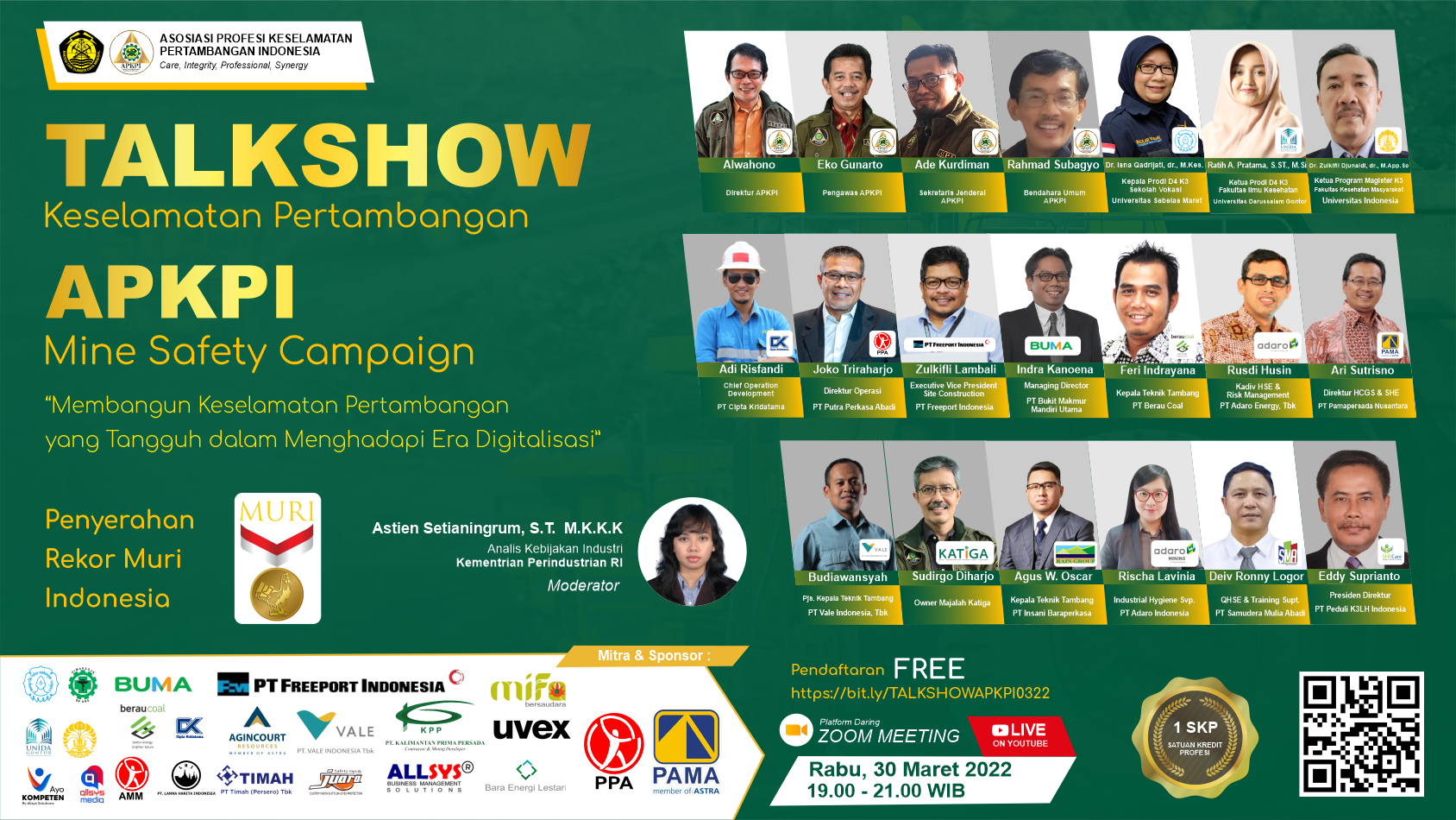Penghargaan MURI Rabu malam nanti merupakan bagian dari Talkshow Keselamatan Pertambangan dengan tema Membangun Keselamatan Pertambangan yang Tangguh dalam Menghadapi Era Digitalisasi. Acara disiarkan secara langsung melalui link zoom dan siaran youtube.