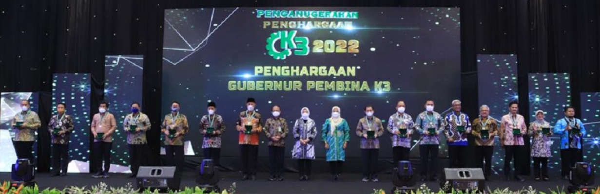 | 15 pemerintah daerah mewakili gubernur masing-masing menerima penghargaan pembina K3 terbaik 2022 oleh Kemenaker |