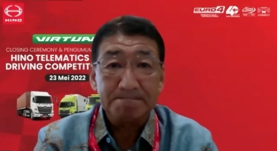 | Masato Uchida, President Director HMSI memberikan sambutan saat pengumuman pemenang Hino Telematic Safety Driving Competition 2022. Foto: HMSI |