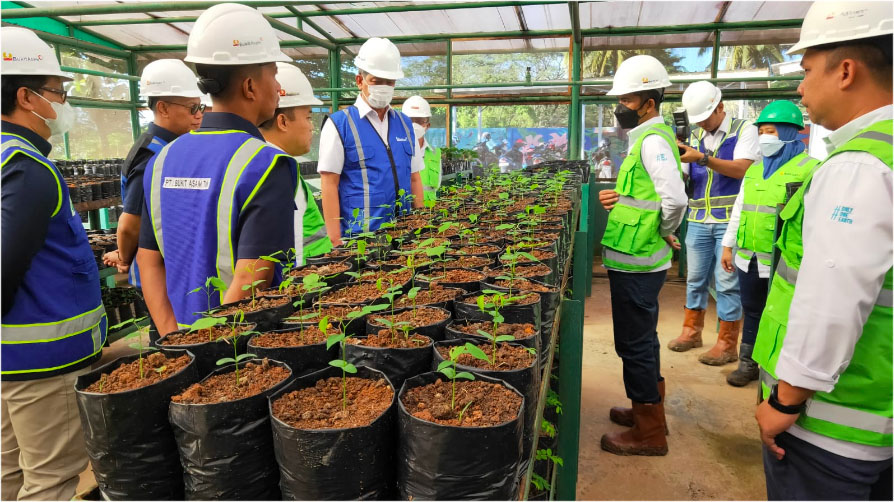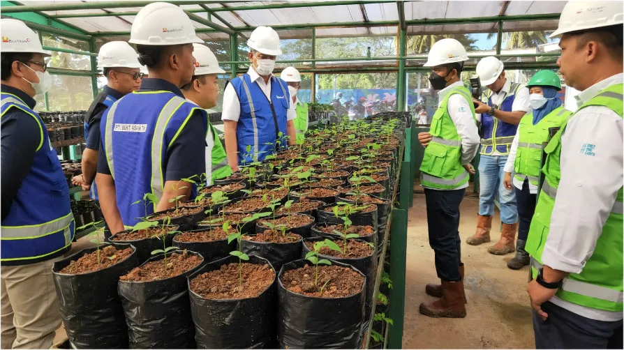 | Direksi PT Bukit Asam Tbk, sedang melihat area budidaya tanaman untuk kebutuhan Botanical Garden. Foto: Bukit Asam |