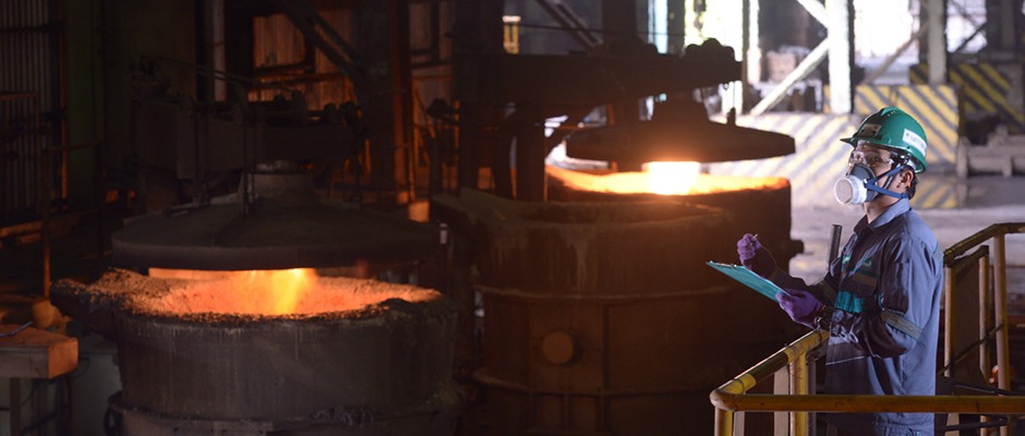 | Pekerja di pabrik PT Aneka Tambang Tbk. Foto: ANTAM |