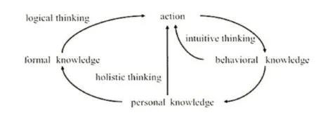 Genba terdiri dari 2 kata “Gen” yang berarti “nyata” atau “actual” dan kata “ba” yang berarti tempat. Secara harfiah genba diartikan sebagai suatu tempat dimana pekerjaan dilakukan dan value ditambahkan. Genba mengkombinasikan3model berpikir yaitu instuitive thinking, logical thinking dan holistic Thinking. Menurut Bernard, 1950, dalam Isomura and Kobayashi, 2020, menyatakan ketiga model berpikir tersebut penting dan saling berkaitan dengan knowledge (pengetahuan) dan action (tindakan) seseorang yang secara sistematis dapat digambarkan dalam sikus proses berikut: