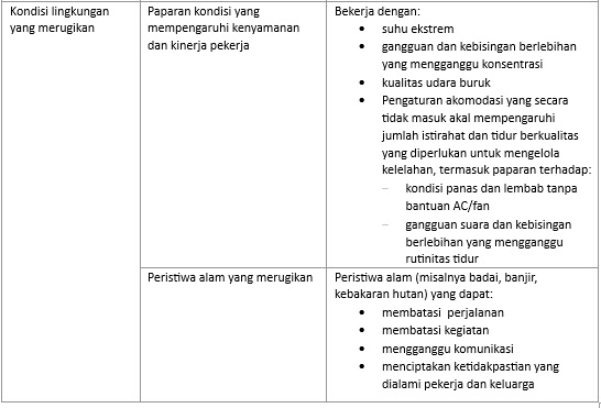 - Peralatan, lingkungan kerja atau tuntutan pekerjaan di area yang berbahaya secara fisik,