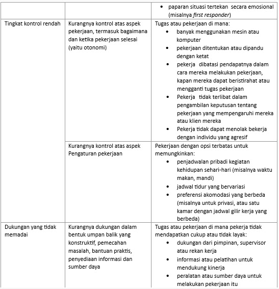 - Tugas atau pekerjaan di mana ada bahaya dan risiko psikososial yang melekat