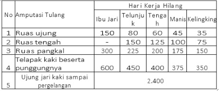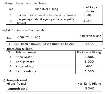 - Kehilangan waktu kerja tidak diperhitungan selama korban kecelakaan dalam proses medis dan jika korban kecelakaan tidak dapat bekerja kembali pada tempat semula, maka dianggap tidak mampu bekerja yang waktu hari hilangnya berdasarkan keterangan dokter kesehatan kerja/dokter perusahaan.