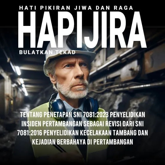 Hapijira minggu ini kami akan menyampaikan tentang perubahan hasil kajian SNI 7081 - 2016 tentang Penyelidikan Kecelakaan Tambang dan Kejadian Berbahaya di Pertambangan menjadi SNI 7081 - 2023 Penyeledikan Insiden Pertambangan.