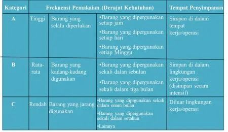 Penerapan 5S dimulai dari keteraturan, yang dimaksudkan dengan Keteraturan atau pemilahan adalah memisahkan antara yang perlu dan yang tidak perlu serta membuang yang tidak perlu, agar proses keteraturan ini dapat dilakukan dengan baik, perlu dilakukan pengecekan secara total tanpa kecuali. Dengan proses melihat artinya Metode penegasan dengan cara melihat semua jenis barang. Menulis susunan jenis barang secara lengkap dan rinci dan akhirnya barang - barang tersebut diangkut untuk dipindahkan.