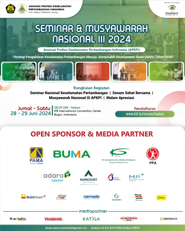 Panitia acara MUNAS III Asosiasi Profesi Keselamatan Pertambangan Indonesia (APKPI) telah resmi membuka pendaftaran untuk para peserta, Pendaftaran Bakal Calon (Balon) Direktur APKPI 2024-2028, sponsorship, media partner, stand booth dan keanggotaan APKPI yang baru.
